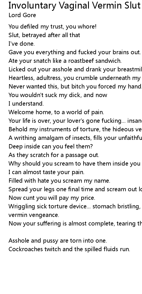 Wriggling sick torture device... stomach bristling, bulging with my filthy vermin vengeance.