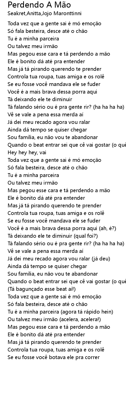 | [00:42.42] | Voc é a mais brava dessa porra aqui |
