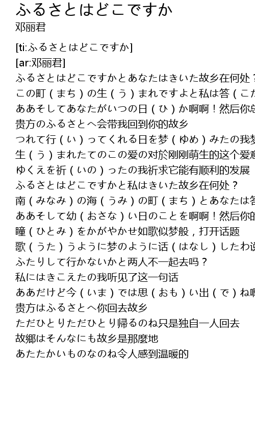 | [00:25.80] | ふるさとはどこですかとあなたはきいた故乡在何处? |