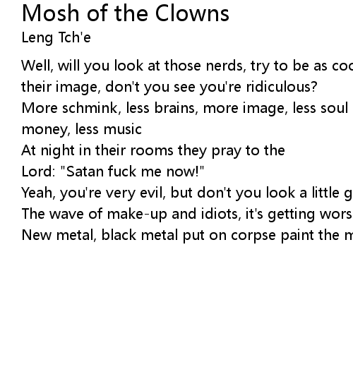| New metal, black metal put on corpse paint the mosh of the clowns |