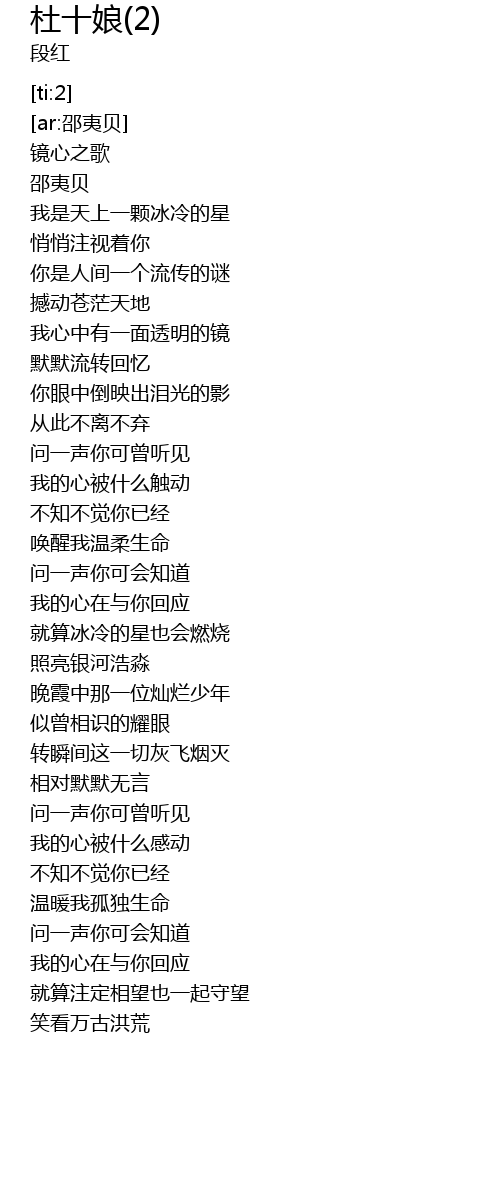 | [01:13.862] | wen yi sheng ni ke zeng ting jian |