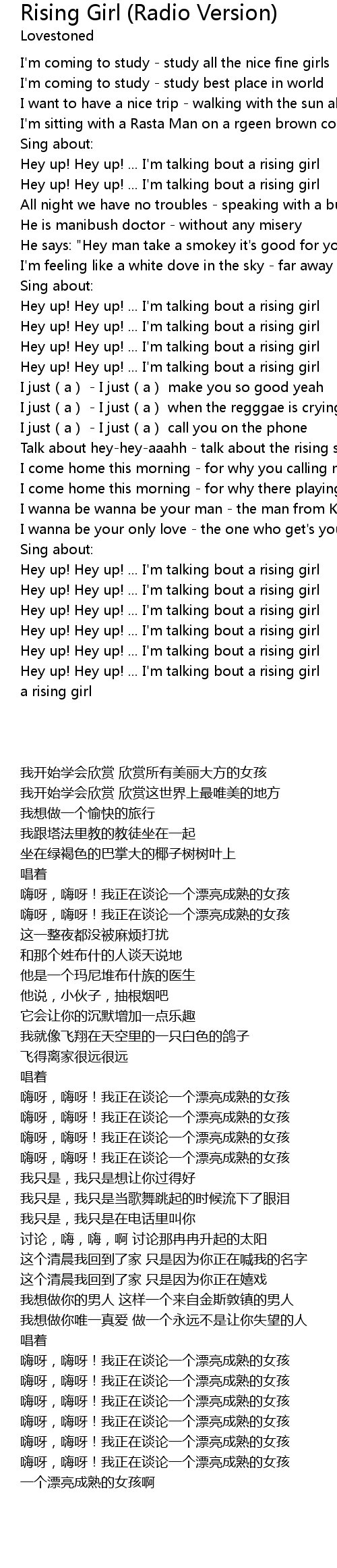 | [00:36.599] | Hey up! Hey up! ... I' m talking bout a rising girl |