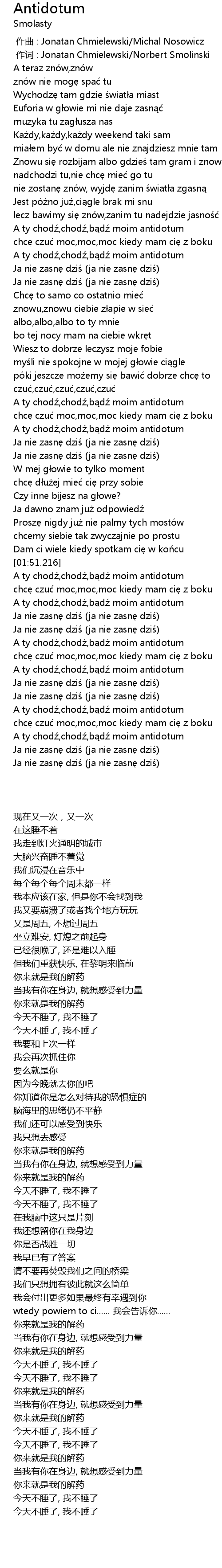 | [00:01.000] | zuò cí : Jonatan Chmielewski Norbert Smolinski |