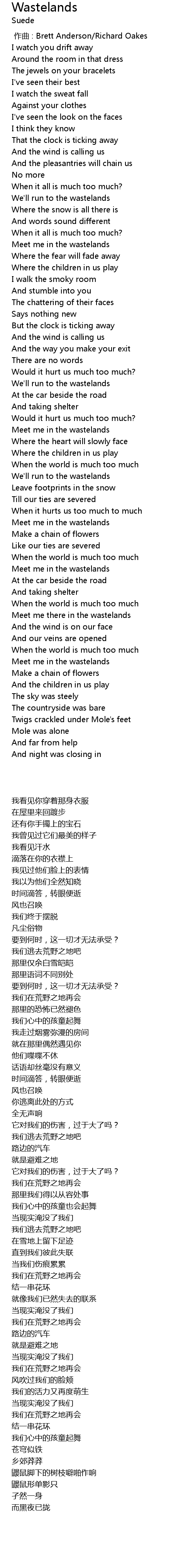 | [00:00.000] | zuò qǔ : Brett Anderson Richard Oakes |