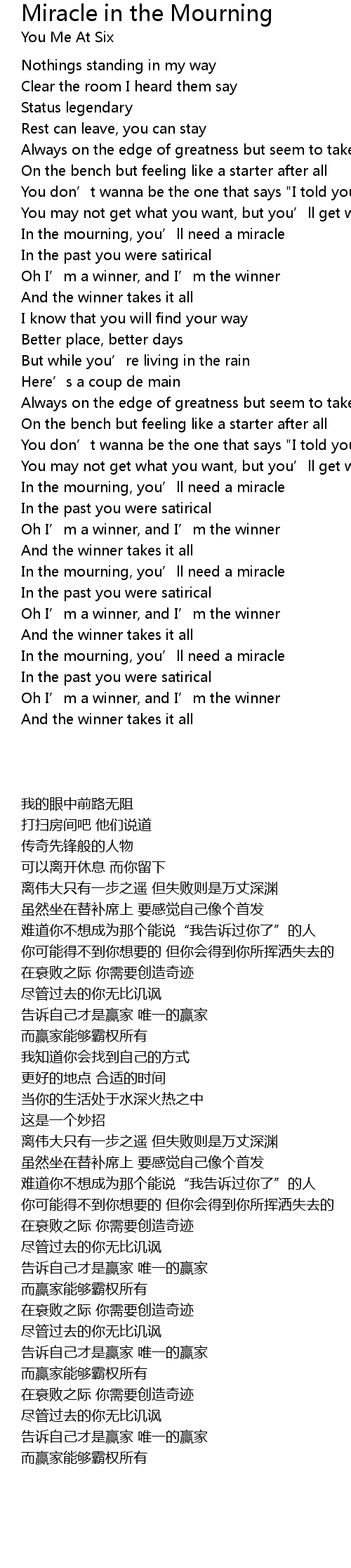 | [01:48.435] | In the mourning, you’ll need a miracle |