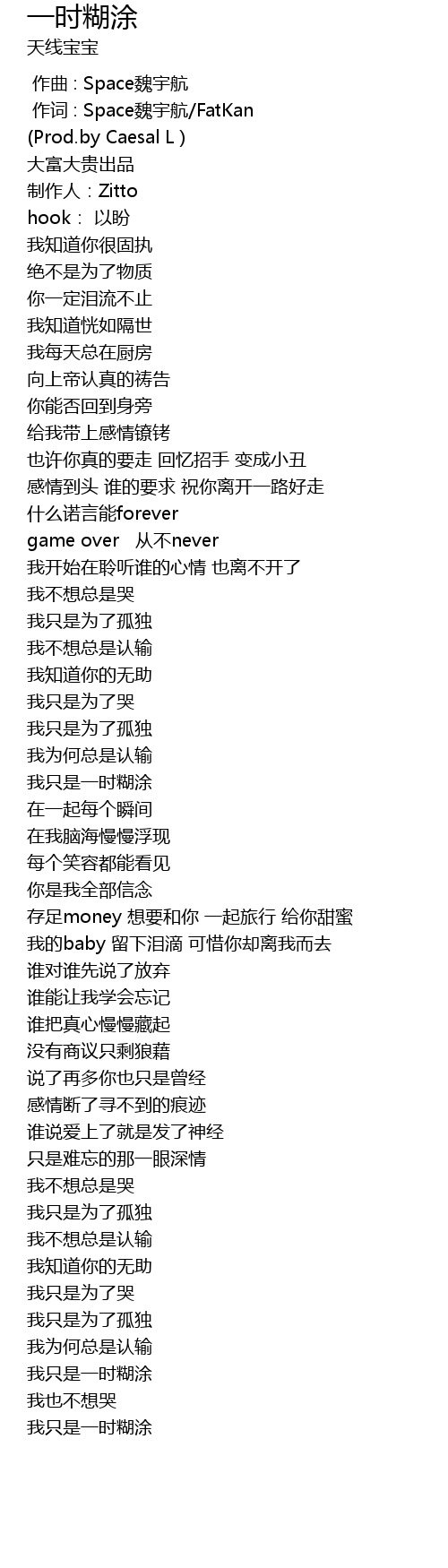| [00:00.124] | 作词 : Space魏宇航/FatKan |