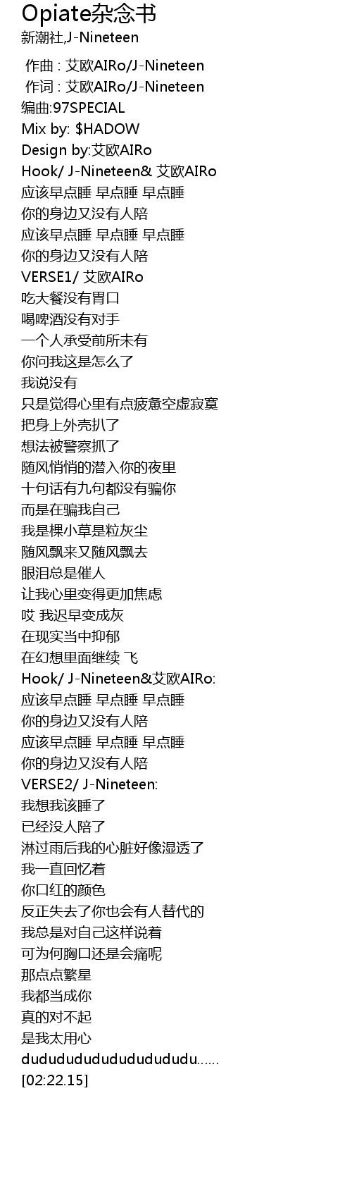 | [00:10.71] | Hook/ J-Nineteen& 艾欧AIRo |