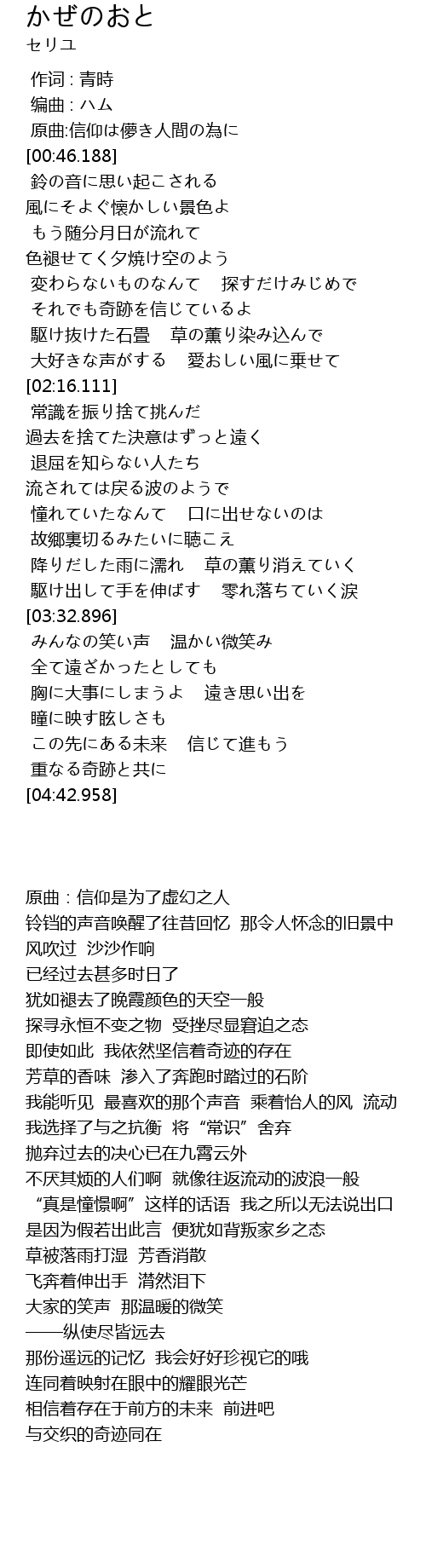 | [00:32.803] | 原曲:信仰は儚き人間の為に |