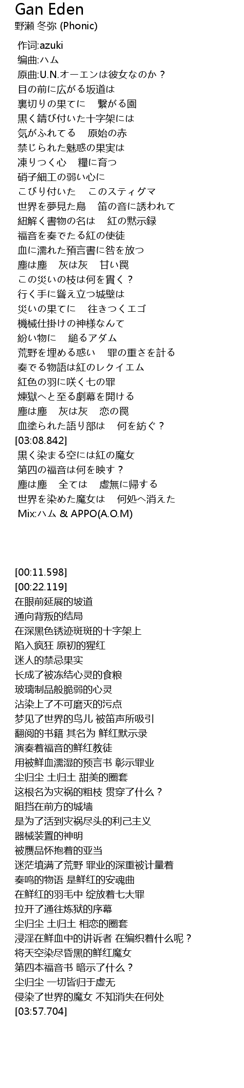 | [00:22.119] | 原曲:U.N.オーエンは彼女なのか? |