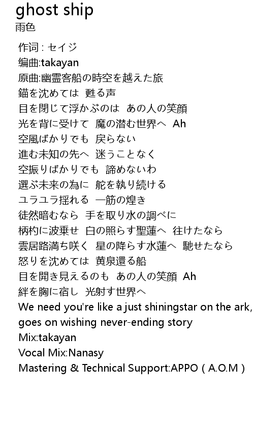 | [00:16.574] | 原曲:幽霊客船の時空を越えた旅 |