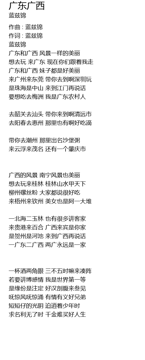 | 一广东二广西 两广永远是一家 | |