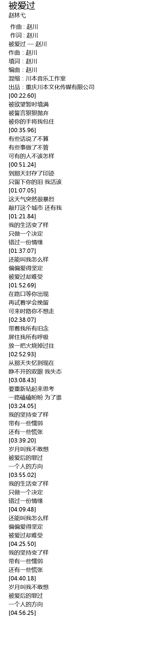 | [00:22.52] | 出品:重庆川本文化传媒有限公司 |