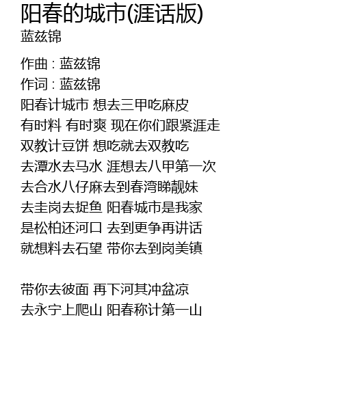 | yáng chūn jì chéng shì xiǎng qù sān jiǎ chī má pí | |