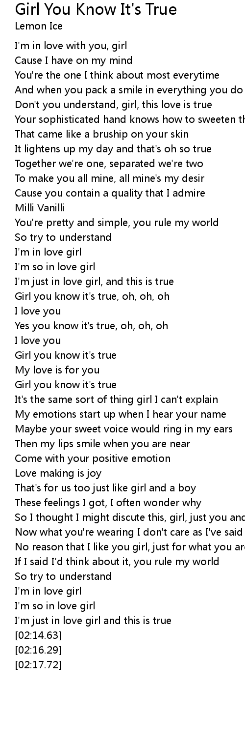 | [00:52.25] | Girl you know it's true, oh, oh, oh |