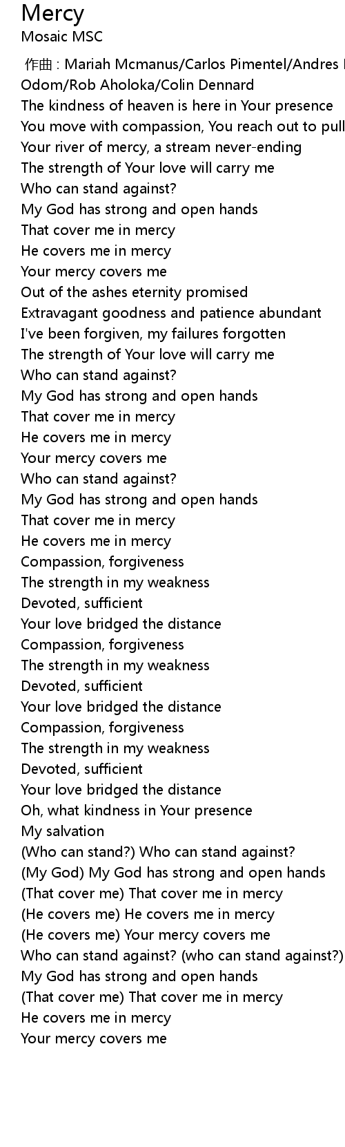 | [03:36.61] | (That cover me) That cover me in mercy |