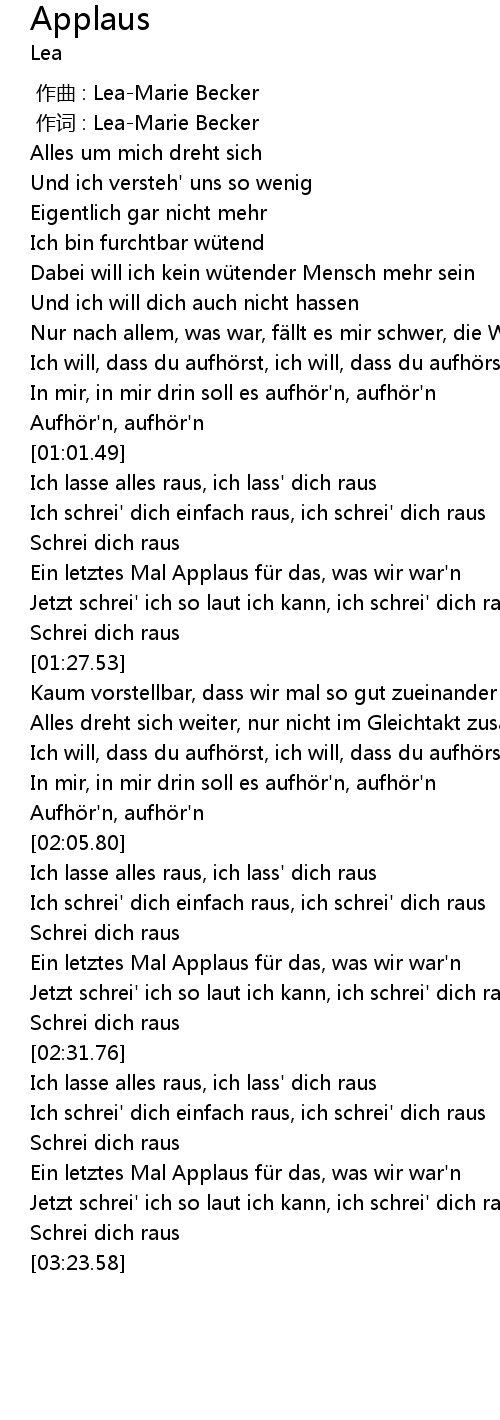 | [03:11.49] | Ein letztes Mal Applaus für das, was wir war'n |