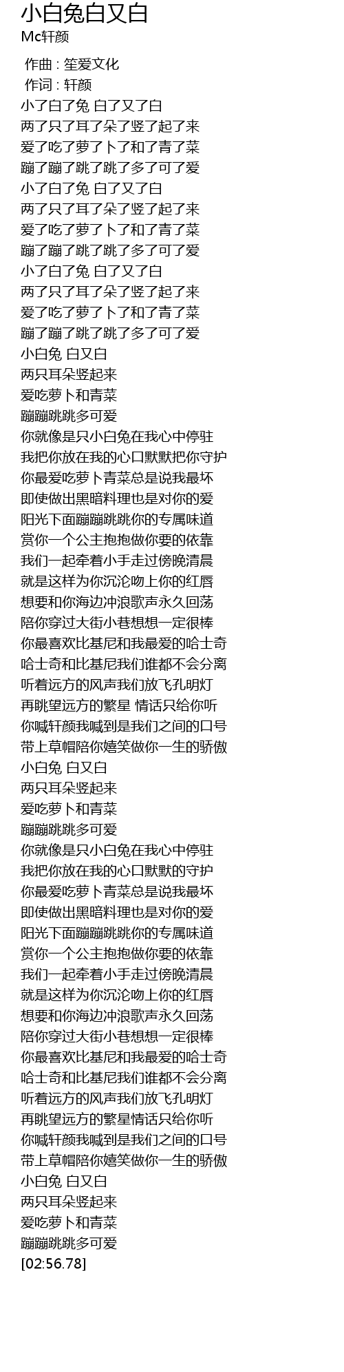 | [02:37.43] | xiǎo bái tù bái yòu bái |