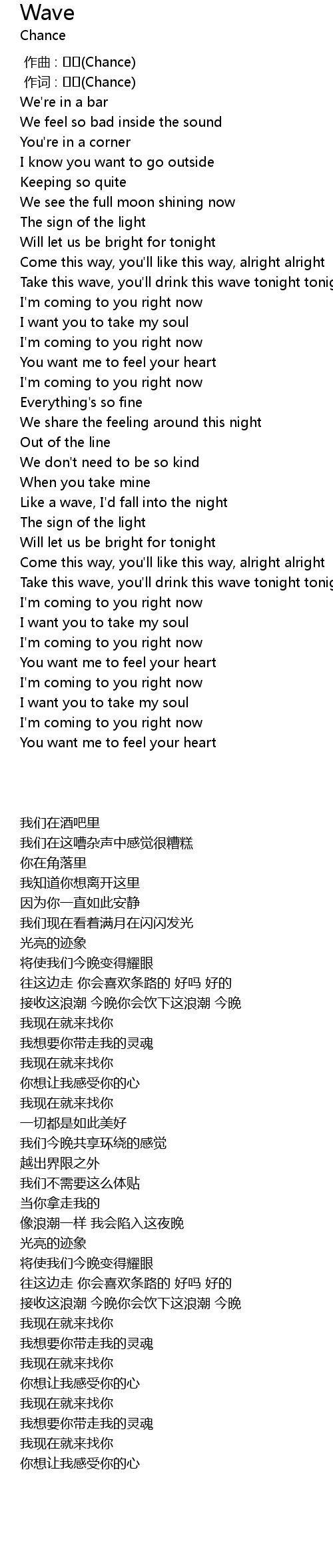 | [00:29.393] | Take this wave, you'll drink this wave tonight tonight |