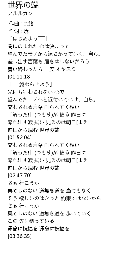 | [02:42.67] | 傷口から睨む 世界の端 |
