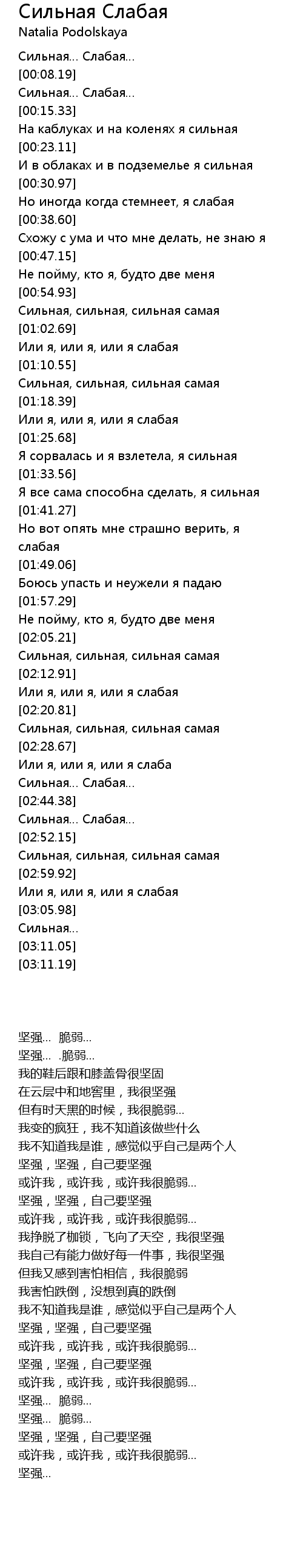 | [00:00.34] | Сильная… Слабая… |
