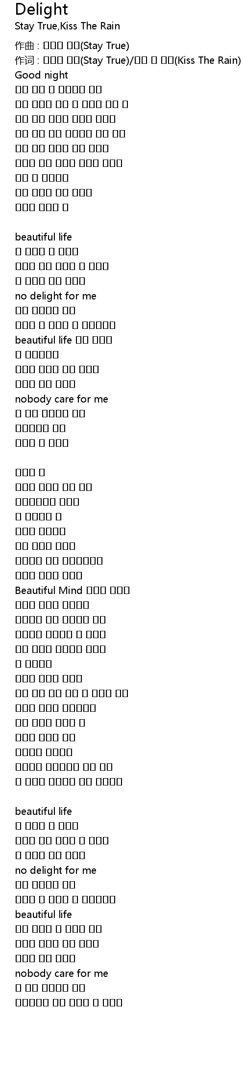 | 作词 : 스테이 트루(Stay True)/키스 더 레인(Kiss The Rain) | |