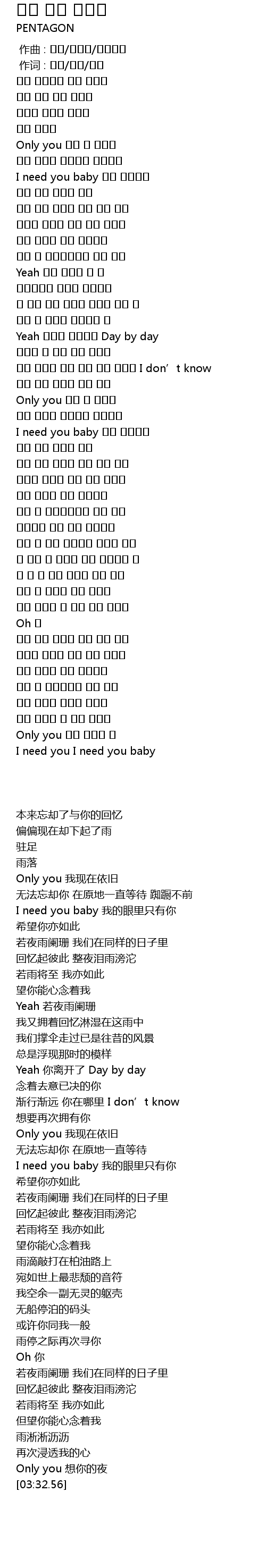 | [01:58.17] | I need you baby 오직 너뿐인데 |