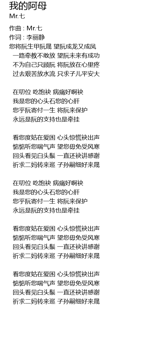 | 回头看见白头鬃 一直还袂讲感谢 | |