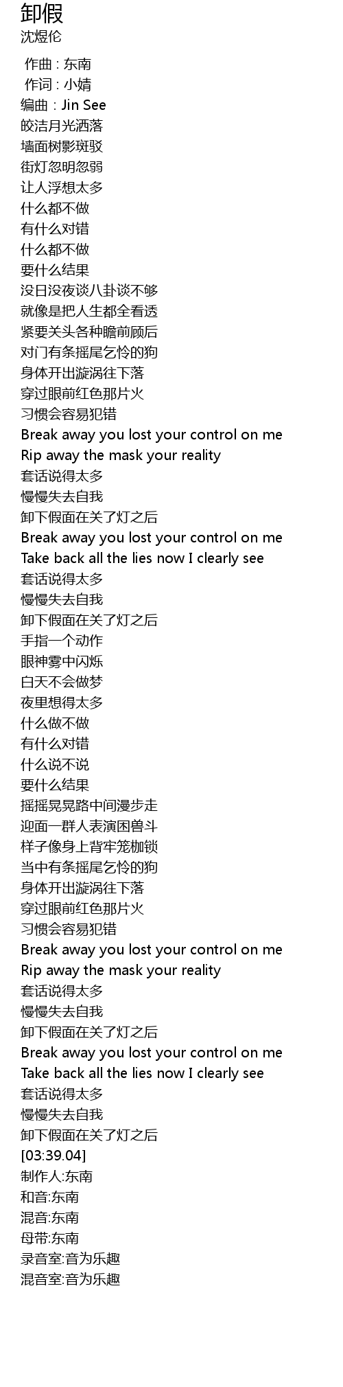 | [03:37.04] | xiè xià jiǎ miàn zài guān le dēng zhī hòu |