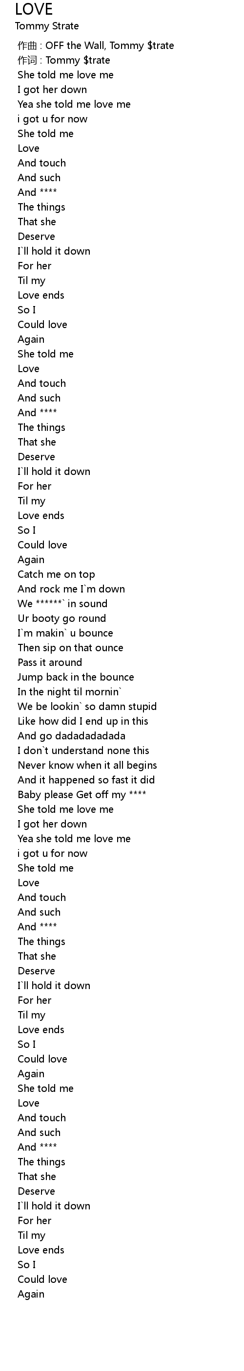 | [00:00.000] | 作曲 : OFF the Wall, Tommy $trate |