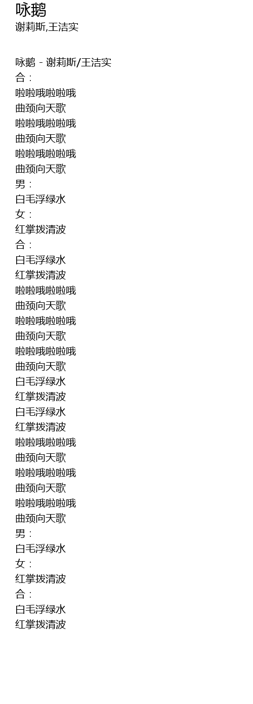 | 咏鹅 - 谢莉斯/王洁实 | |