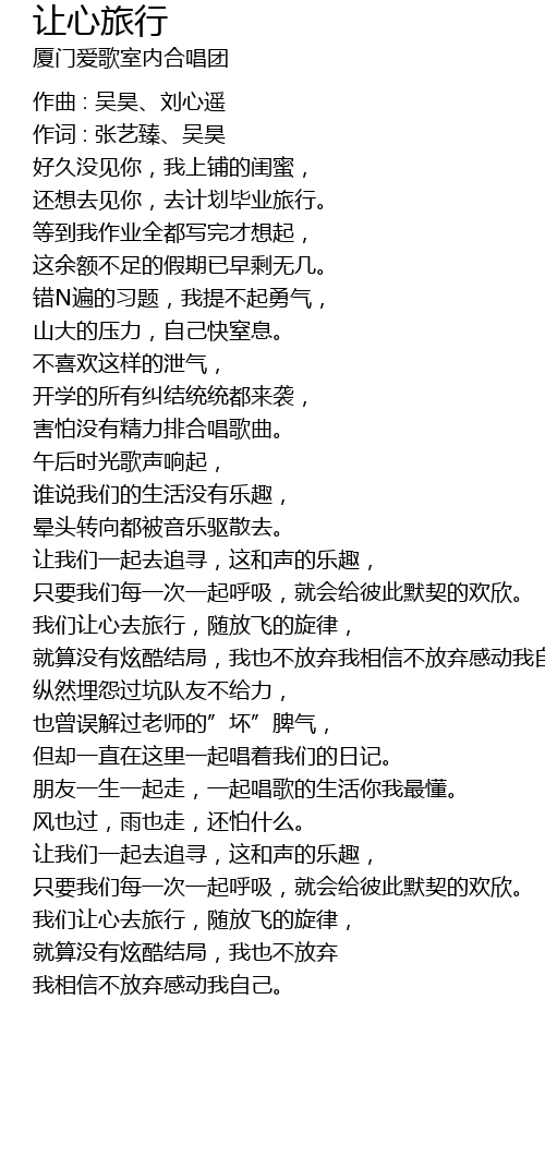 | 我们让心去旅行,随放飞的旋律, | |