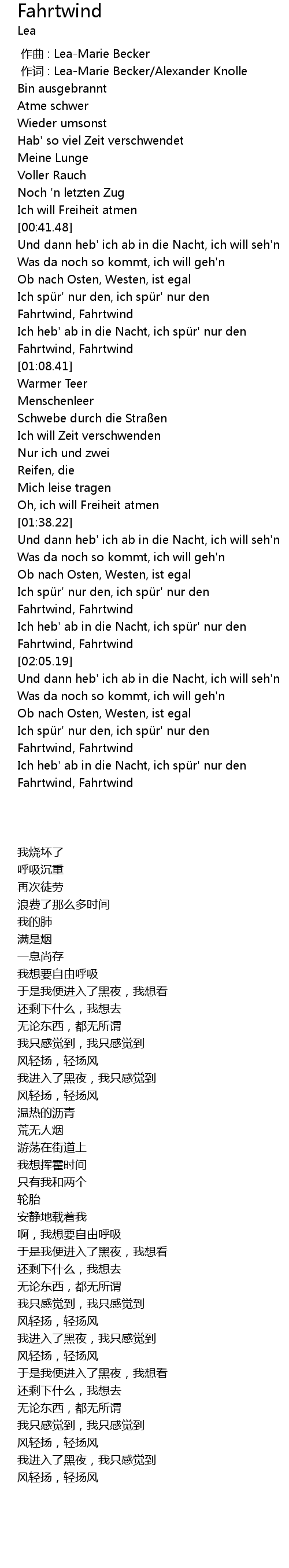 | [01:54.41] | Fahrtwind, Fahrtwind |