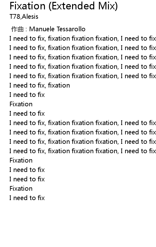 | [01:31.900] | I need to fix, fixation fixation fixation, I need to fix |