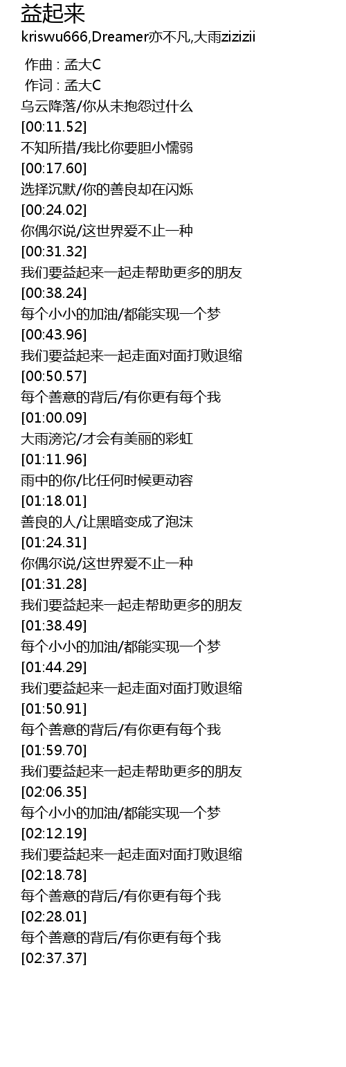 | [01:59.70] | 我们要益起来一起走帮助更多的朋友 |