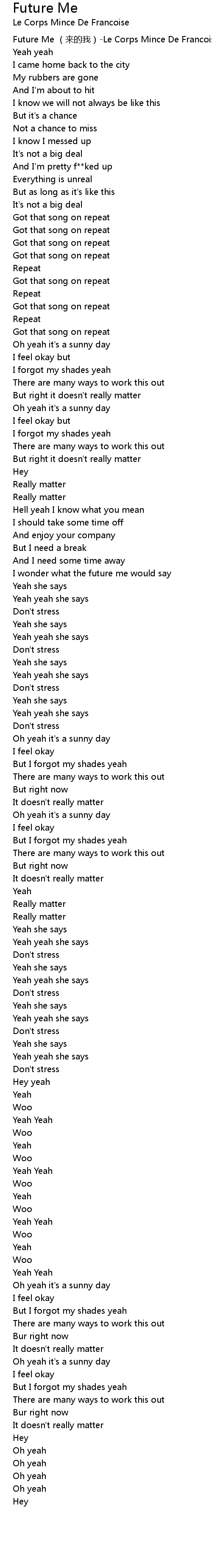 | [00:00.00] | Future Me lai de wo Le Corps Mince De Francoise |