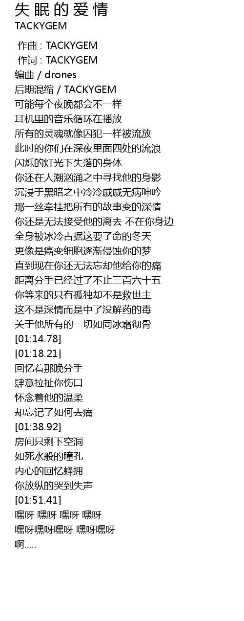 | [00:12.24] | 后期混缩 / TACKYGEM |
