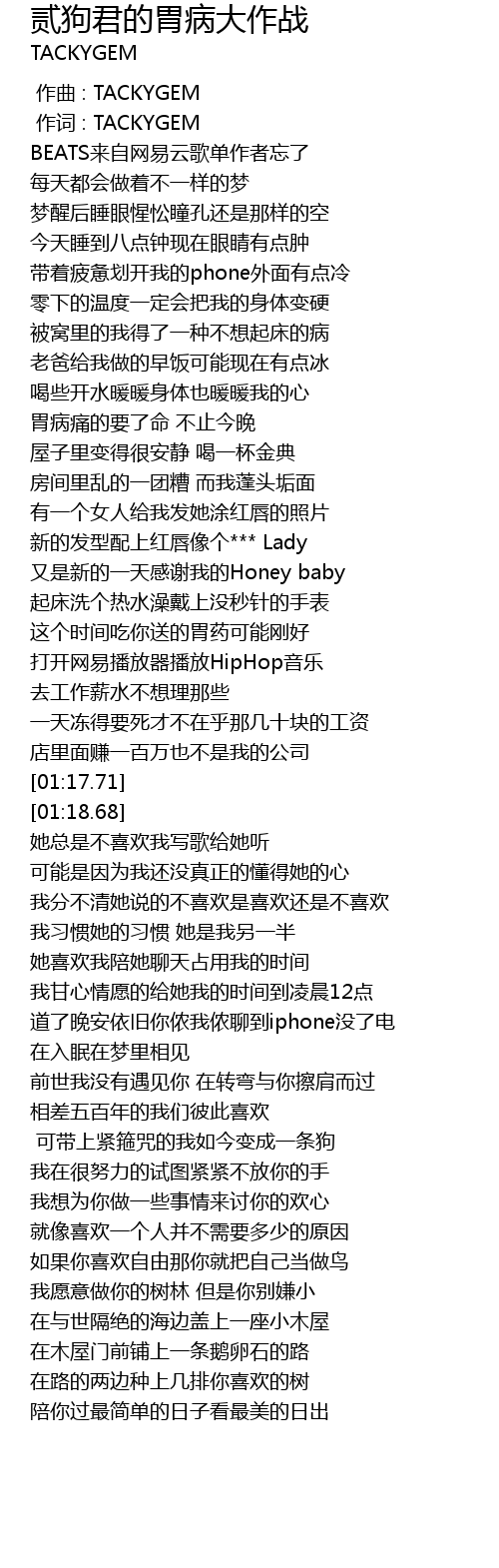 | [01:04.53] | 这个时间吃你送的胃药可能刚好 |