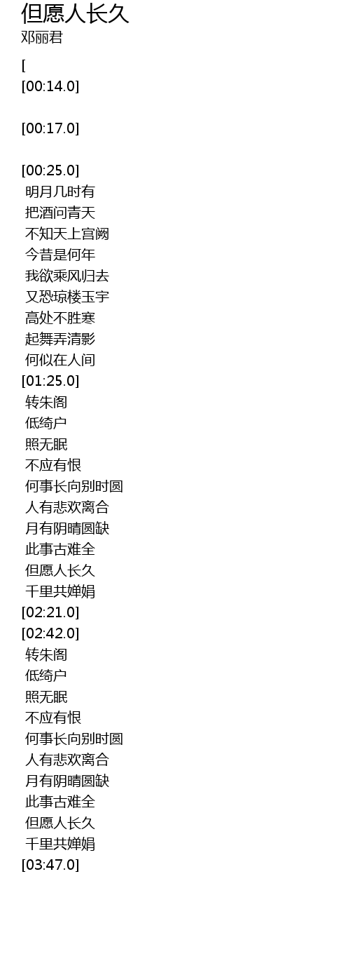 | [03:32.0] | dàn yuàn rén cháng jiǔ |