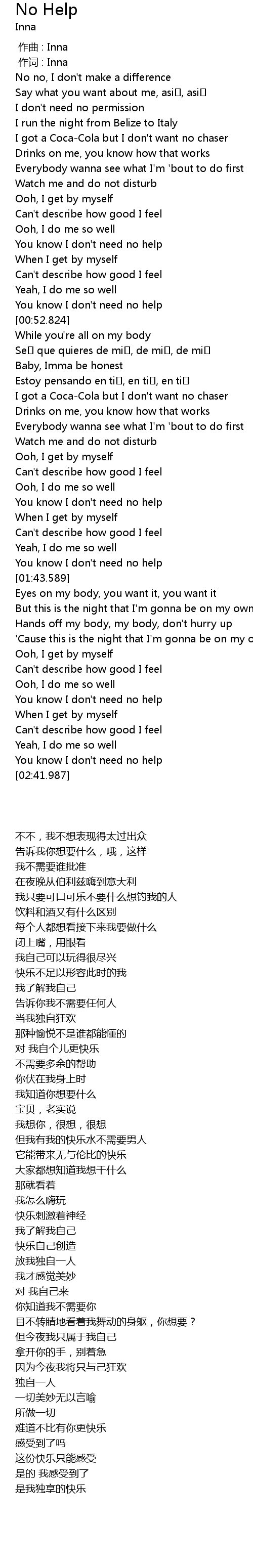 | [01:40.013] | You know I don' t need no help |