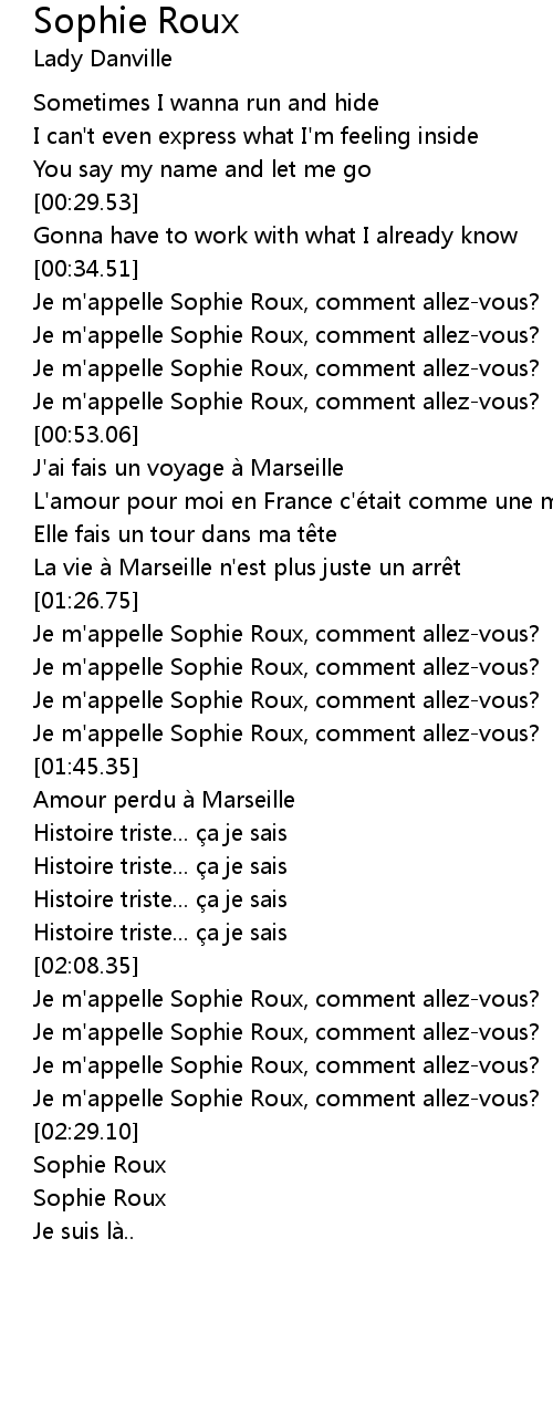| [02:23.88] | Je m' appelle Sophie Roux, comment allezvous? |