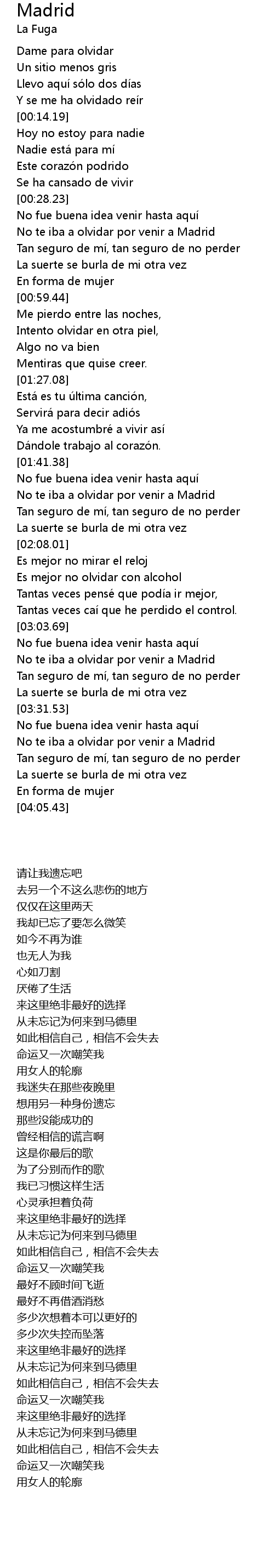 | [01:49.01] | No te iba a olvidar por venir a Madrid |