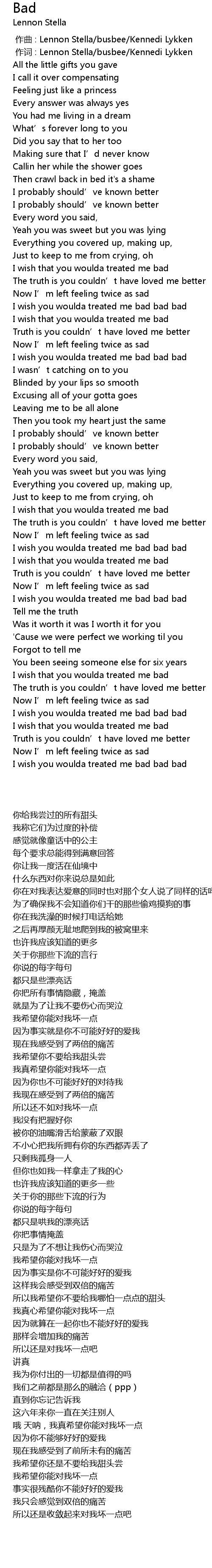 | [01:09.47] | I wish you woulda treated me bad bad bad |