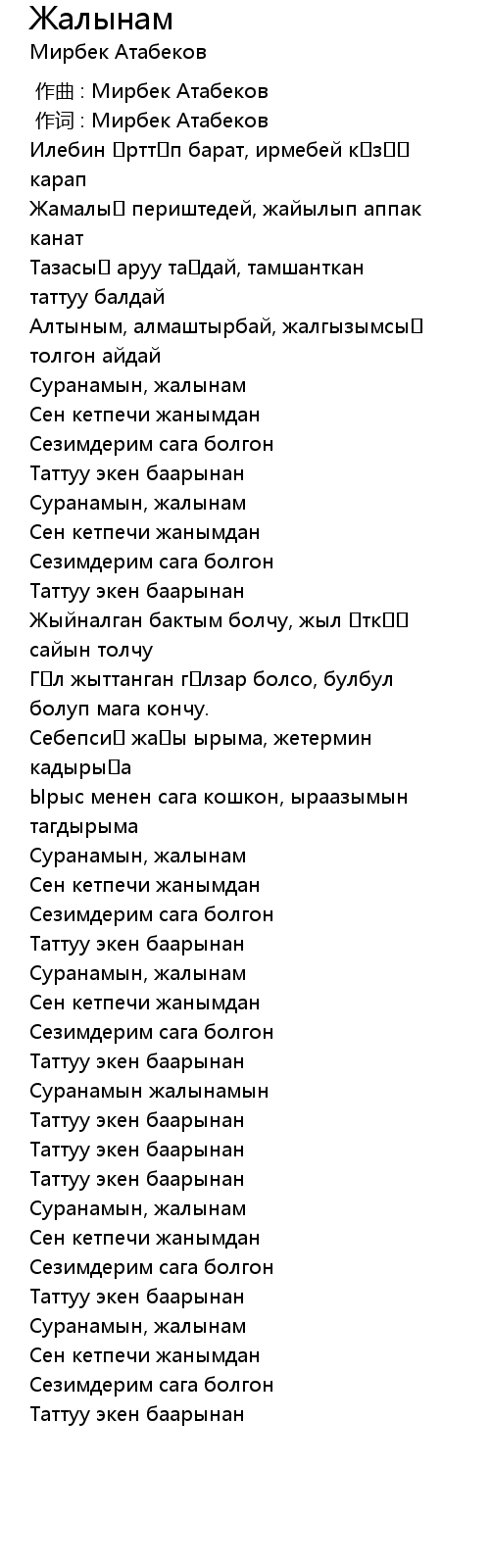 作词 : Мирбек Атабеков |