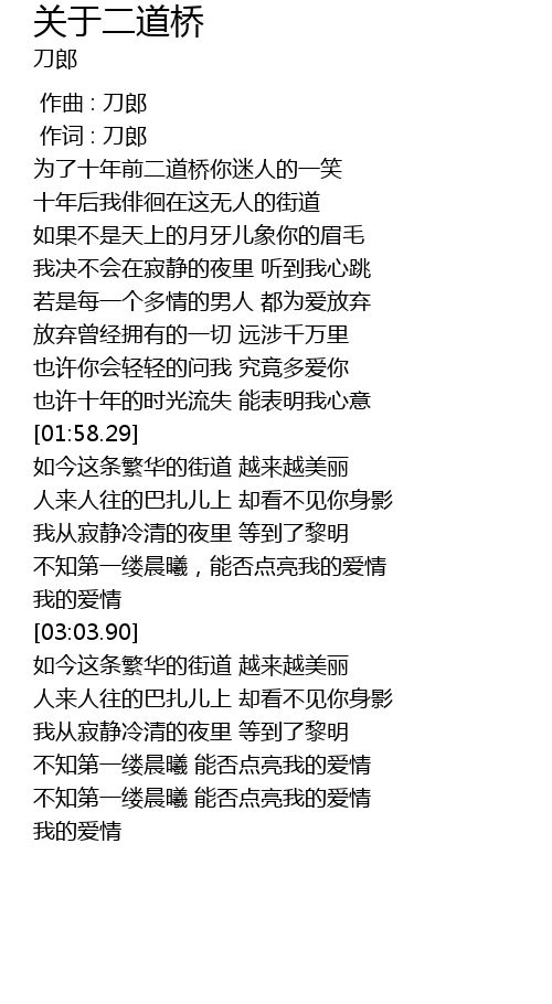 | [00:40.95] | 为了十年前二道桥你迷人的一笑 |