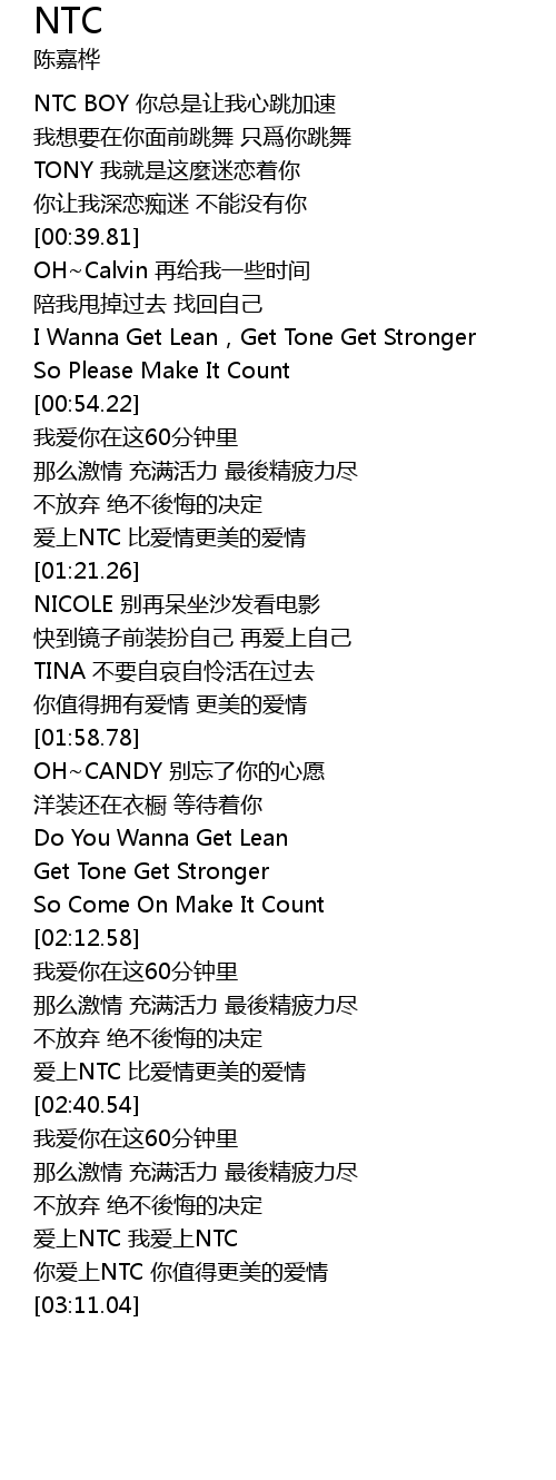| [03:04.70] | 你爱上NTC 你值得更美的爱情 |
