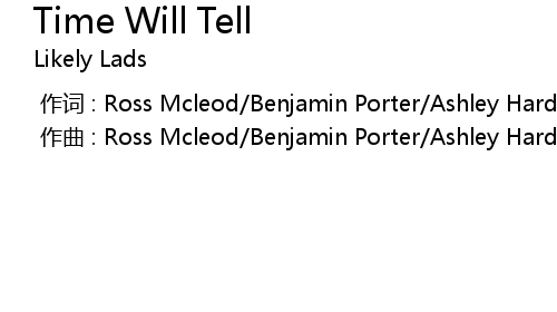 | [00:00.000] | 作曲 : Ross Mcleod/Benjamin Porter/Ashley Harding/Jordan Maher |