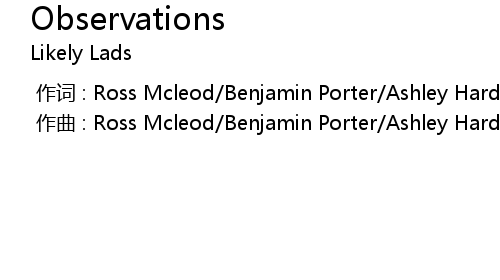 | [00:00.000] | 作曲 : Ross Mcleod/Benjamin Porter/Ashley Harding/Jordan Maher |