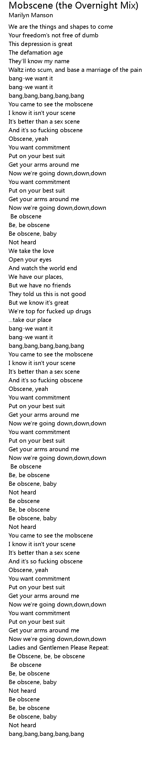 [Cheerleaders & Manson:] Be obscene