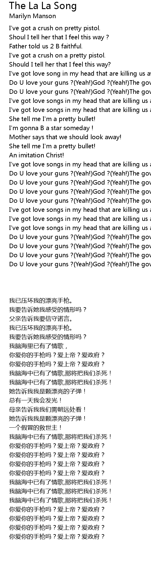Do U love your guns ?(Yeah!)God ?(Yeah!)The government?Fuck U! |