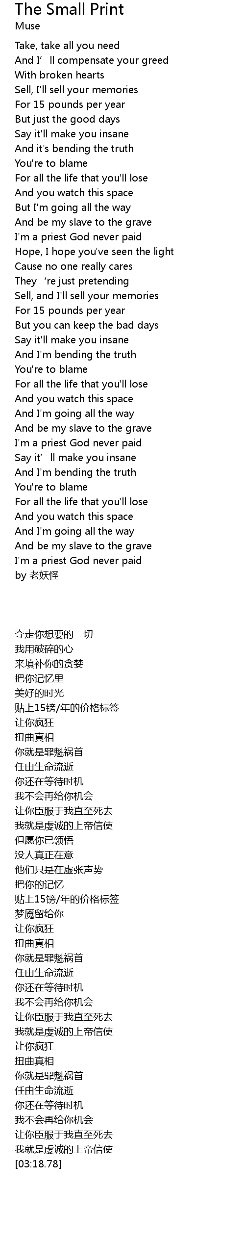 | [03:18.78] | by 老妖怪 |